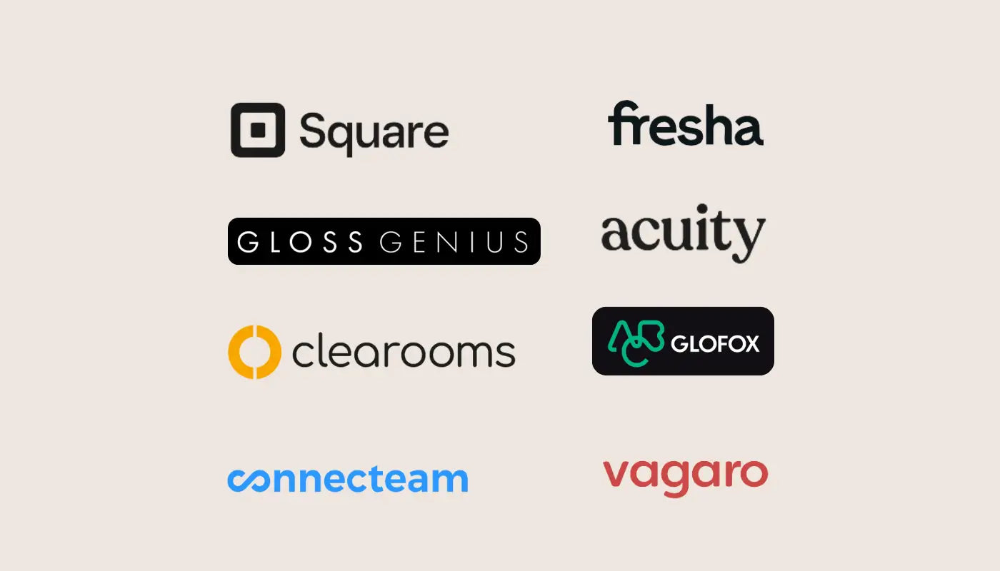 Our forms can be integrated with tools you already use, like Fresha, Vagaro, Square, GlossGenius & others.